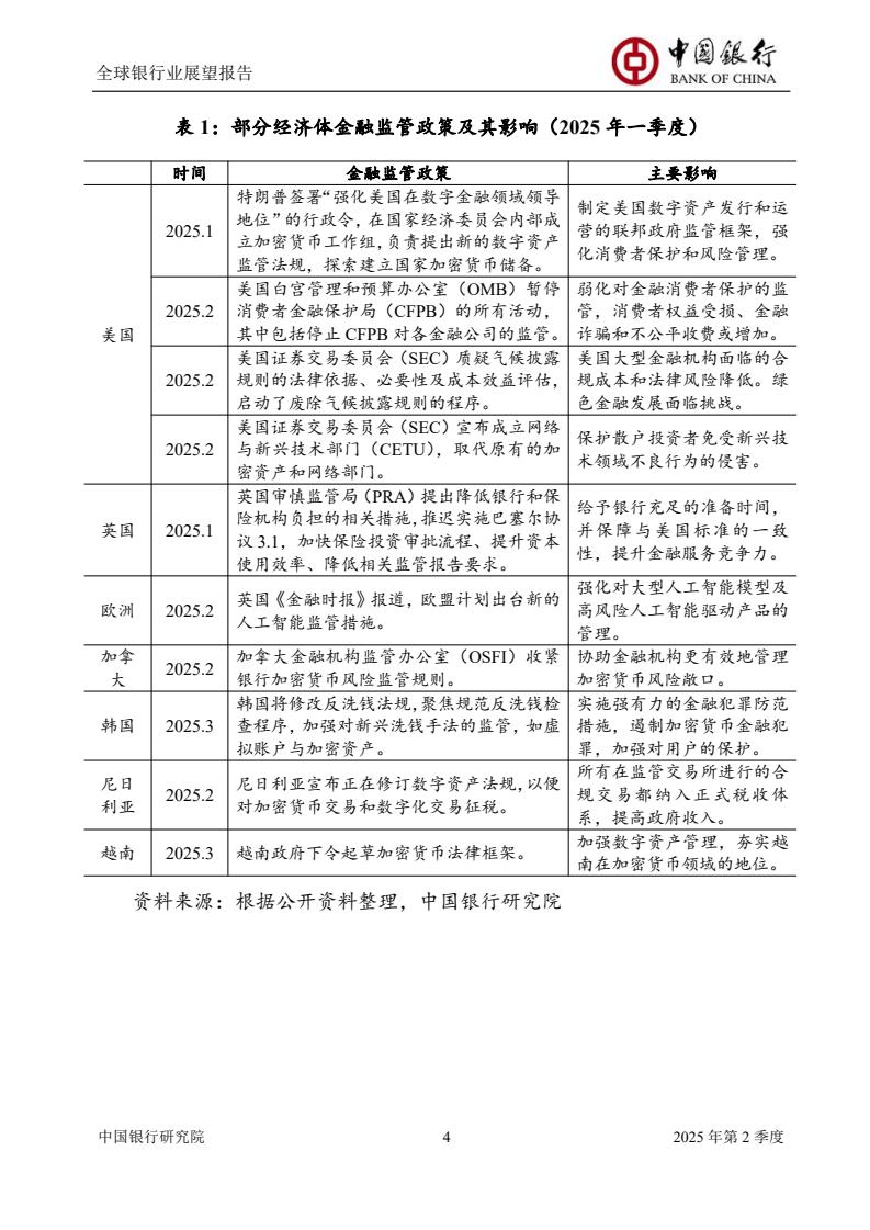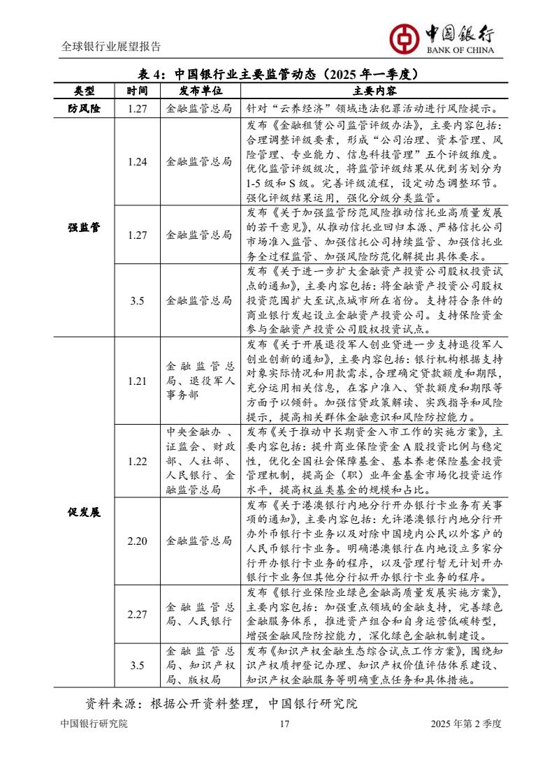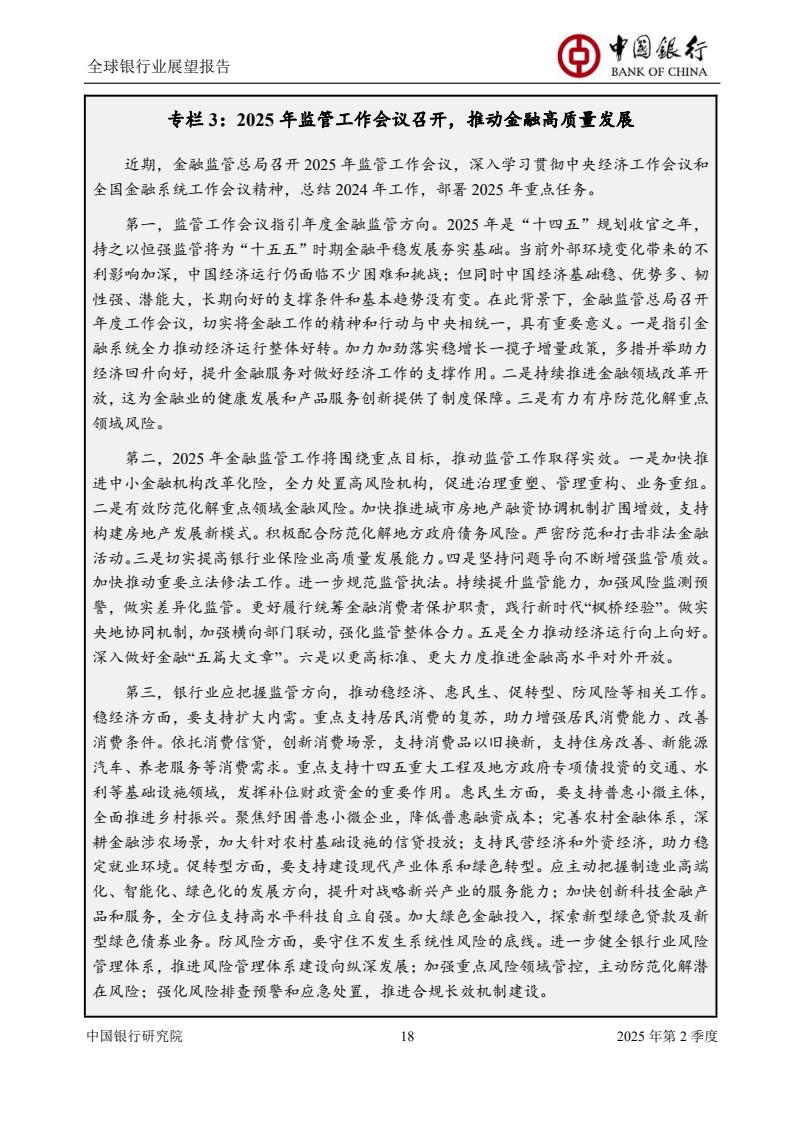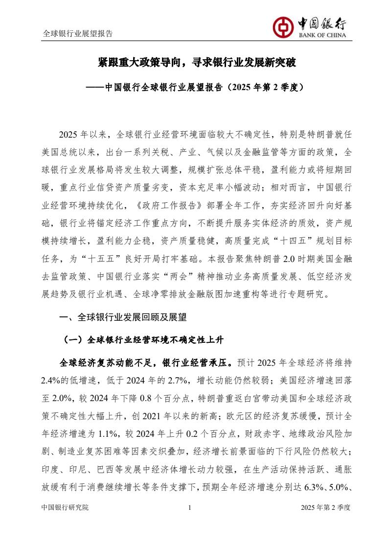 本次季报将聚焦特朗普2.0时期美国金融去监管政策、中国银行业落实“两会”精神推动业务高质量发展、低空经济发展趋势及银行业机遇、全球净零排放金融版图加速重构等专题进行研究。