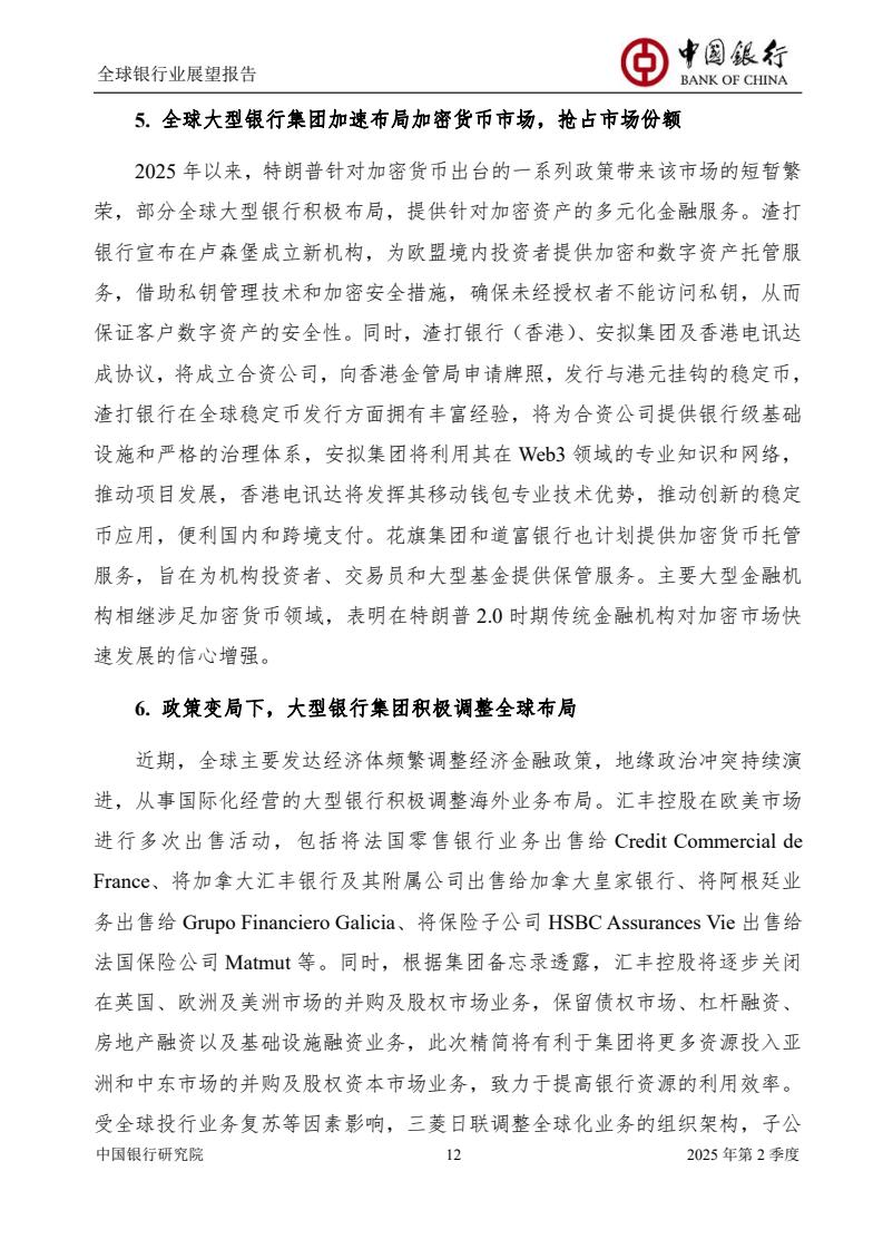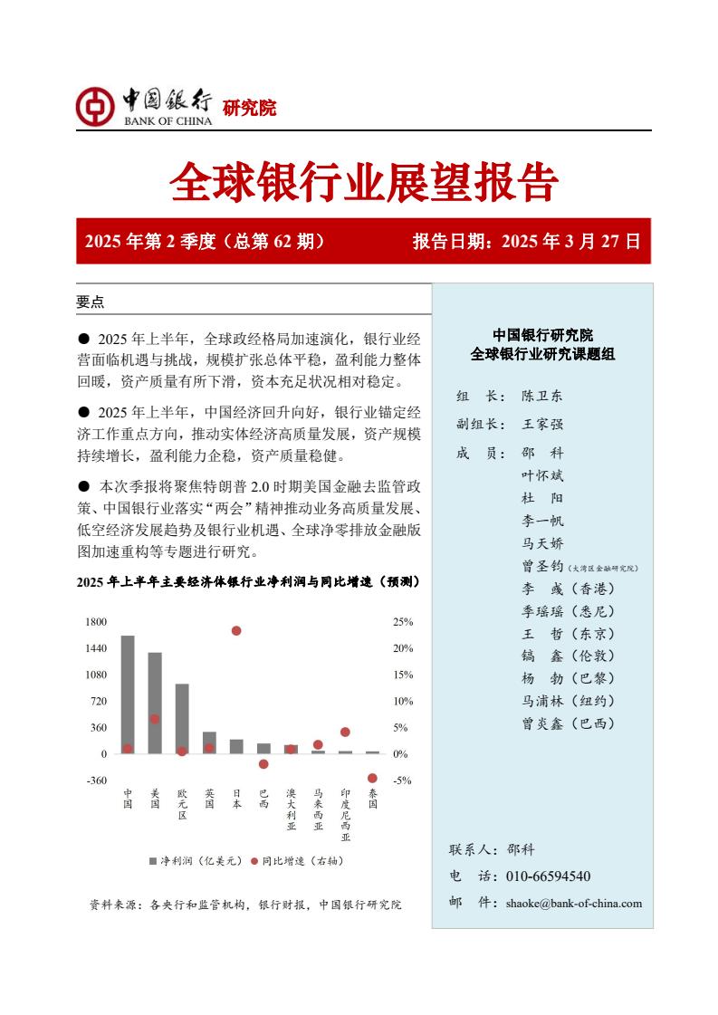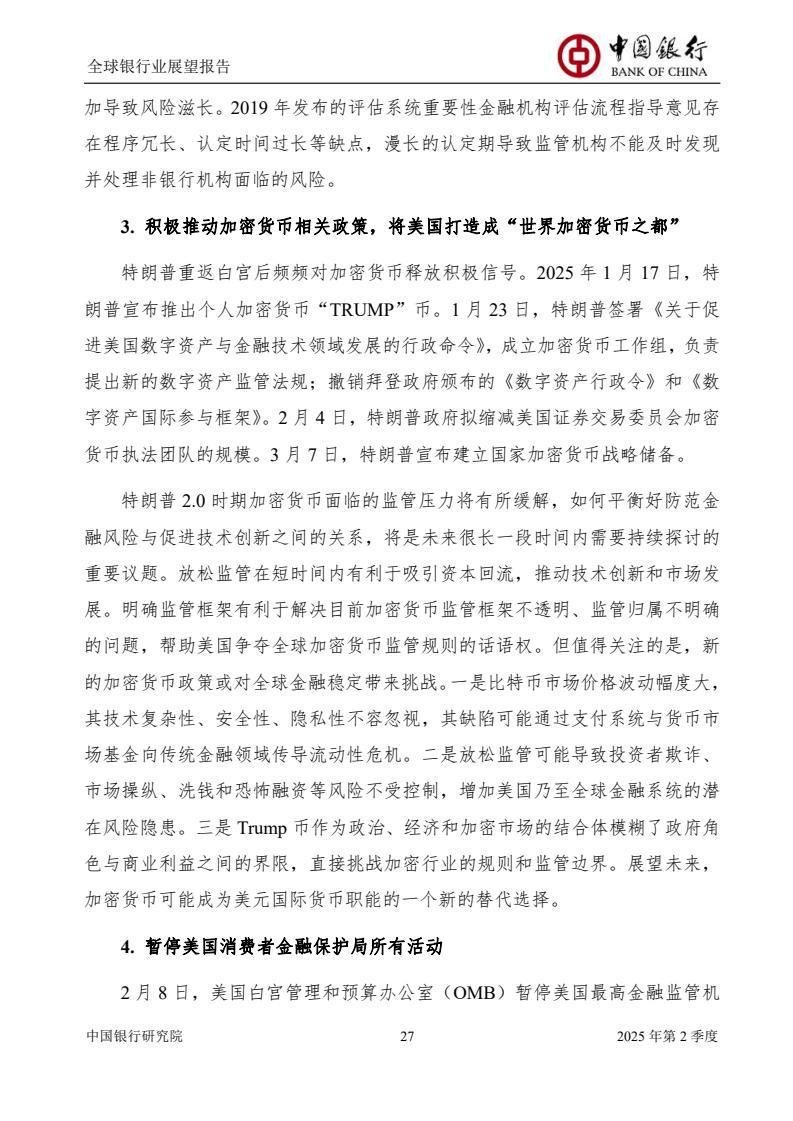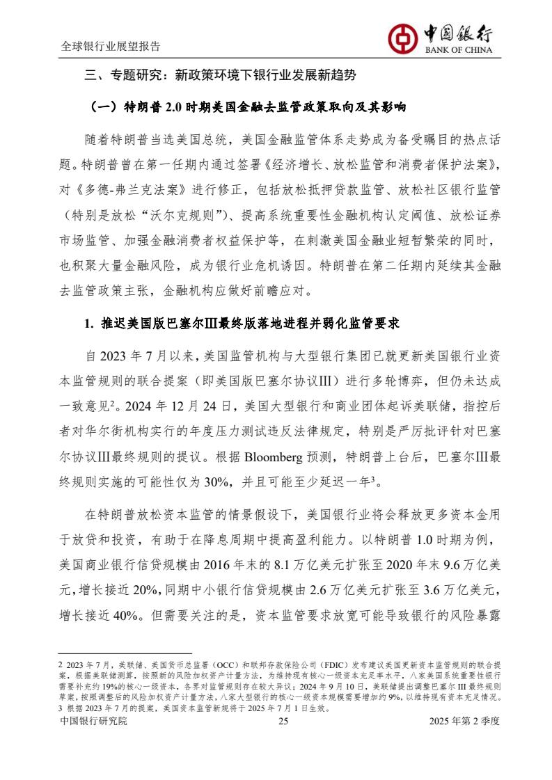 本次季报将聚焦特朗普2.0时期美国金融去监管政策、中国银行业落实“两会”精神推动业务高质量发展、低空经济发展趋势及银行业机遇、全球净零排放金融版图加速重构等专题进行研究。