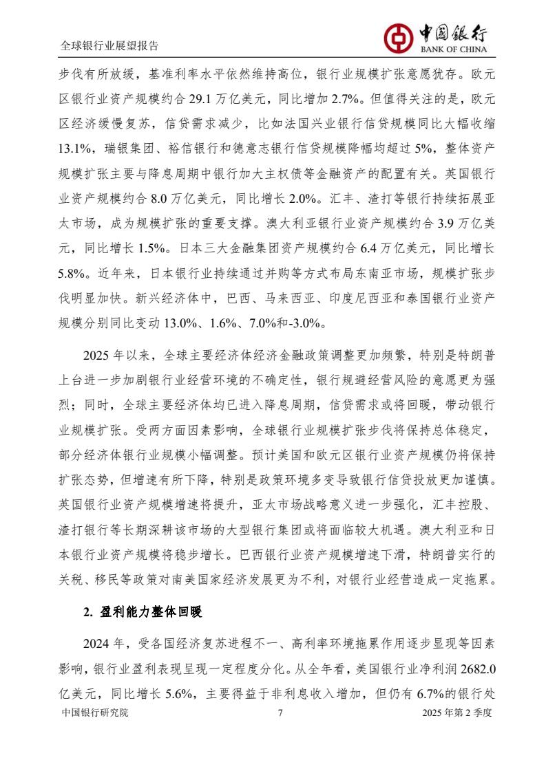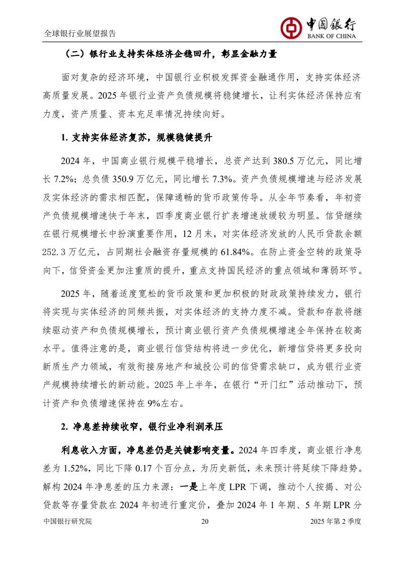 2025年上半年,中国经济回升向好,银行业锚定经济工作重点方向,推动实体经济高质量发展,资产规模持续增长,盈利能力企稳,资产质量稳健。