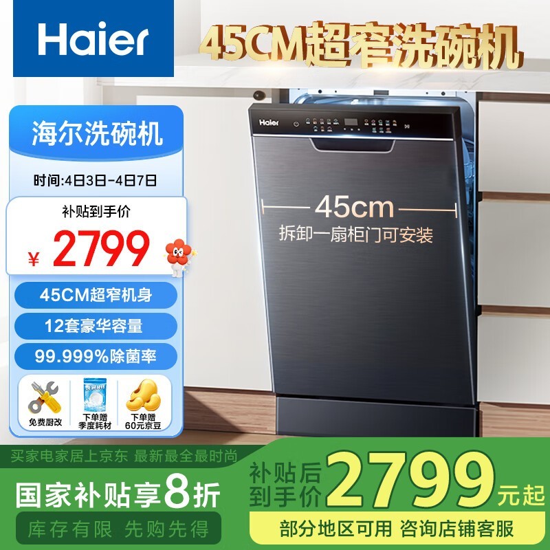海尔X3000超窄嵌入式洗碗机仅2508元