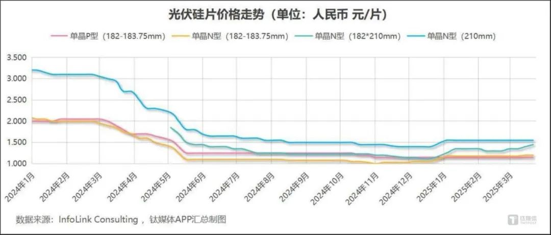 今年2月9日,划时代的“136号文”出台(即国家发展改革委、国家能源局联合发布的《关于深化新能源上网电价市场化改革 促进新能源高质量发展的通知》),新能源全面入市大踏步前进。自那之后,新能源领域的大部分讨论,就比如这篇文章,几乎都言必称“136号文”,下游发电企业涌起“抢装潮”,抢着在政策6月1日新老划段时间节点前上马一批项目,以拿到结算差价,但对于6月1日后的项目,即使是国央企,也只能在徘徊中观望,一边焦急等待着地方细则的动向,一边加班加点更新投资收益率测算模型。上游制造商,在经历了两年左右的价格大熊市后,受下游抢装刺激,终于迎来产业链价格持续上涨,但与此同时,也出现了违约毁单、私卖A货等乱象,而对于6月1日后的行情,悲观、消极的声音和情绪占到多数。因为担心“现在涨得越高,未来跌得越狠”,一些头部企业近期也表示对这波涨价感到“害怕”“担忧”。究竟目前的行情能持续多久?对于行业意味着什么?还要先从3月份至今产业链各环节的表现说起:硅料:小幅上涨,总体持稳硅料方面,根据新能源研究机构InfoLink公布的最新统计数据,截至3月底,致密料交易价格区间在38元/kg到43元/kg之间,交易均价为40元/kg,最低成交价和均价较2月均有所上升,其中均价月涨幅为2.56%,但该环节价格自去年11月末就一直横盘未动,所以今年整体涨幅也停留在2.56%,如果从2024年初算起,该环节跌幅仍高达38.46%。颗粒硅方面,2月价格即迎来上涨,3月继续涨势。截至3月底交易均价为38元/kg,月涨幅2.7%,今年以来上涨5.56%。但该环节去年跌幅较大,2024年至今仍下跌35.59%。3月,硅料市场结束春节休整期后,交易有所活跃,受下游抢装机、组件涨价等刺激,价格有所上涨,但幅度总体小于产业链其他环节,这主要还是因为该环节产能过剩问题较突出,不论是作为生产商、供应商的硅料厂,还是作为直接需求方的硅片厂,都有不少库存在手,限制了增量订单和价格走势。根据中国有色金属工业协会硅业分会的调研,从近期下游需求来看,仅部分硅片厂有较强烈的硅料采购需求,其余大多企业都在消耗自身库存。该机构认为,此轮“抢装潮”带动的价格上涨传导至硅料端时影响有限,预计该环节后续价格持稳为主。不过,这未尝不是好事,业内普遍认为硅料产量不会像电池、组件端一样,降价时停产成风,涨价后又不顾自律公约的约束纷纷复产,该环节受供需影响,未来一段时间预计产量仍会较为稳定,能够维持去库状态,“抢装潮”结束后价格保持稳定的概率也较高。硅料龙头协鑫科技联席CEO兰天石近日在年报沟通会上表示,预计公司今年第三季度末将实现利润,第四季度有望全季度盈利。2023年,该公司尚有25.1亿元净利润,到了2024年,全年出现47.5亿元净亏损。硅片:主流产品年内涨幅近30%硅片方面,据InfoLink统计,市场需求较少的上一代技术路线182-183.75mm尺寸单晶P型硅片交易均价近4个月未变化,仍为1.15元/片。主流N型硅片方面,182-183.75mm尺寸硅片3月份交易均价上涨1.69%,达到1.2元/片,年内价格上涨14.29%;182*210mm尺寸N型硅片目前交易均价为1.45元/片,3月同比上涨11.54%,今年以来大涨29.46%,是主材产业链所有主流产品中涨幅最高的。更大尺寸的210mm N型硅片3月交易均价无变化,仍为1.55元/片,年内涨幅为10.71%。截至3月底,N型硅片主流产品年内涨幅均超过10%,不过,去年全年相关产品跌幅在60%左右,从2022年末算起更是跌超80%,厂商还是在盈利线以下挣扎。