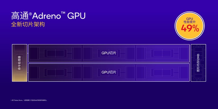 除了 CPU 采用了骁龙 8 系旗舰芯片一样的 Kryo CPU 之外,第四代骁龙 8s 的高通 Adreno GPU 采用全新切片架构,这一设计来自骁龙 8 至尊版,相比于前代,第四代骁龙 8s 的 GPU 性能较提升了49%。这个切片架构针对现代图形工作负载进行调优,能够提供基于着色处理器的独立内核,从而实现更佳工作分配和并发性能。