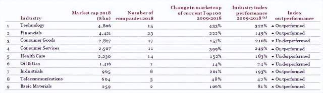 2008年金融危机后,全球央行量化宽松政策释放流动性,2009年至2018年间,科技行业总市值增加了433%。这一次的TMT行情中,起到主要带动作用的就是苹果公司。