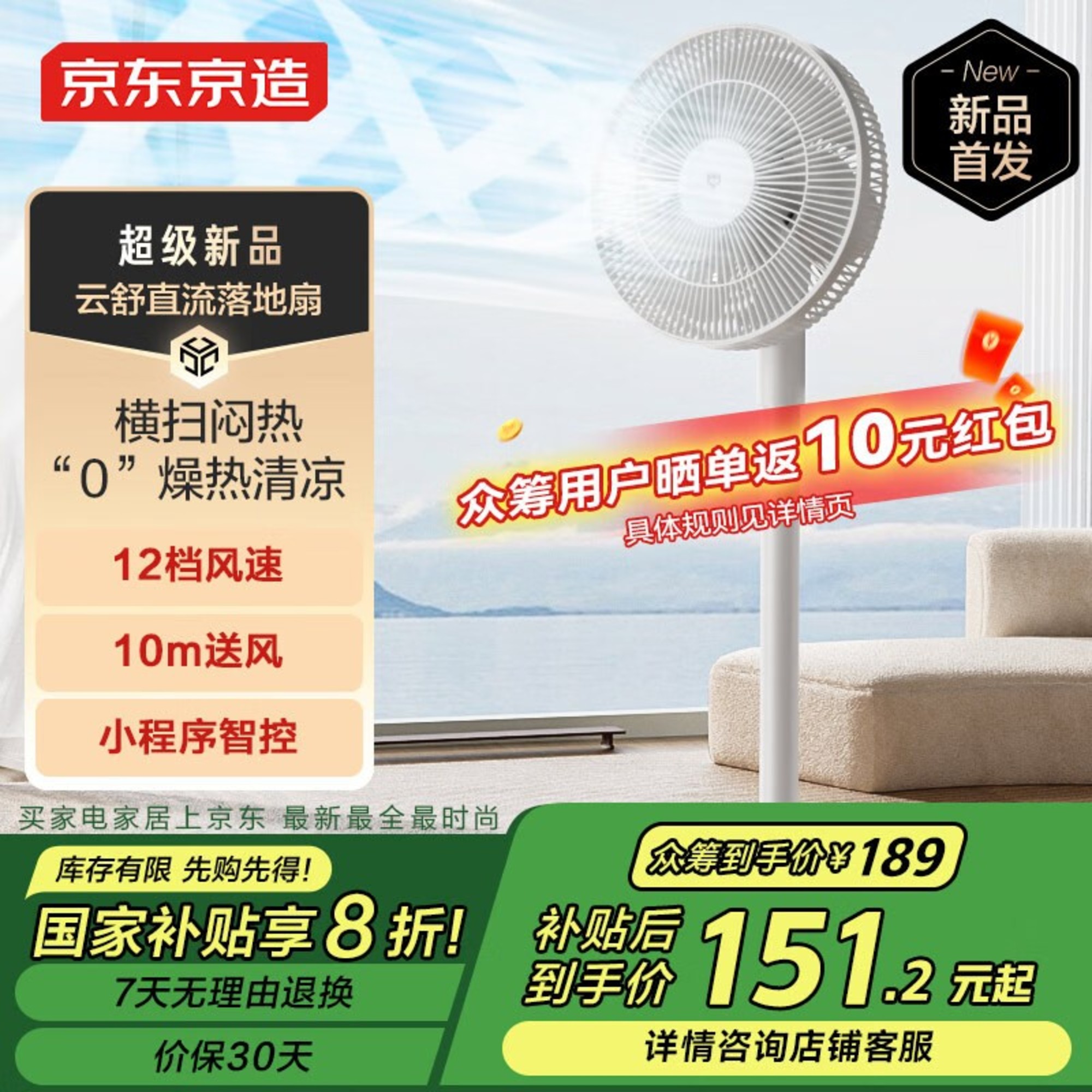 京东京造云舒电风扇直流变频柔风感清凉舒适