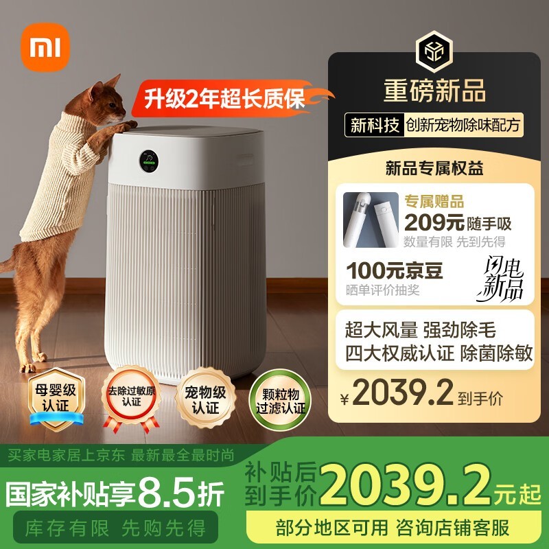 米家小米宠物净化器强力吸除猫毛去除异味杀菌消毒