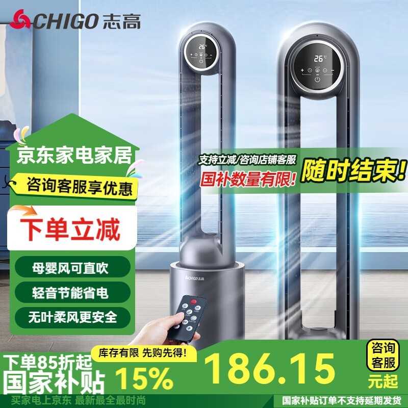 志高无叶电风扇遥控款,简约时尚设计,安全无叶片