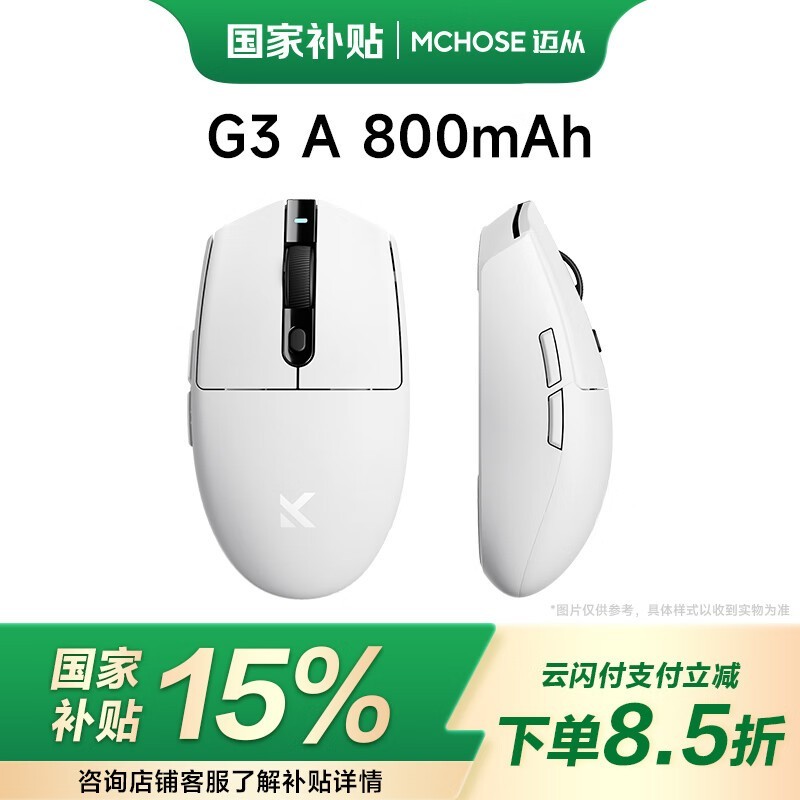 迈从G3三模鼠标白色12000DPI促销价84.15元
