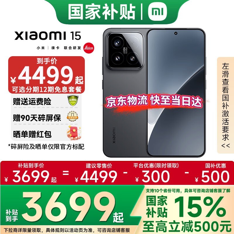 小米15 5G旗舰手机京东国补优惠低至3499元