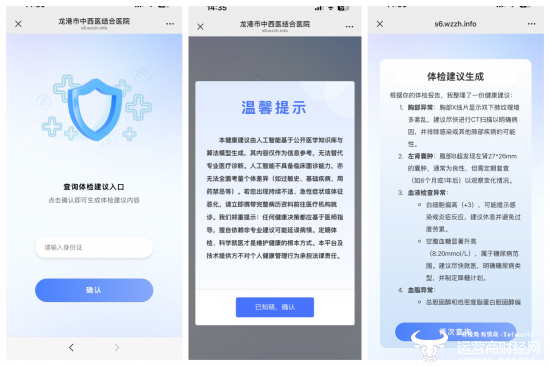 在龙港市中西医结合医院,刚完成体检的林先生拿着体检报告就迫不及待拿出手机,通过医院官方公众号进入AI健康板块,几秒钟后,一篇根据他本人体检报告生成的健康管理方案便出现在眼前。林先生一边查看着该私人定制方案中给他的有关饮食、运动等方面的建议,一边说道:“这个功能真的太方便了,不用再去找各科医生看体验报告,这里建议都非常全面,还告诉我们怎么饮食,怎么锻炼,整体情况一目了然。”