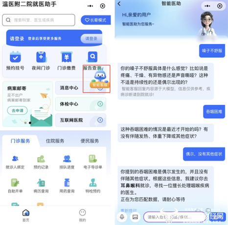 “我的嗓子不舒服……吞咽困难……”“嗓子不舒服具体是什么感觉?这样的吞咽情况是最近才开始的吗,有无伴随发热等其他症状”……对话就医助手小程序里的“智能医助”,患者就像有了一个私人医生。