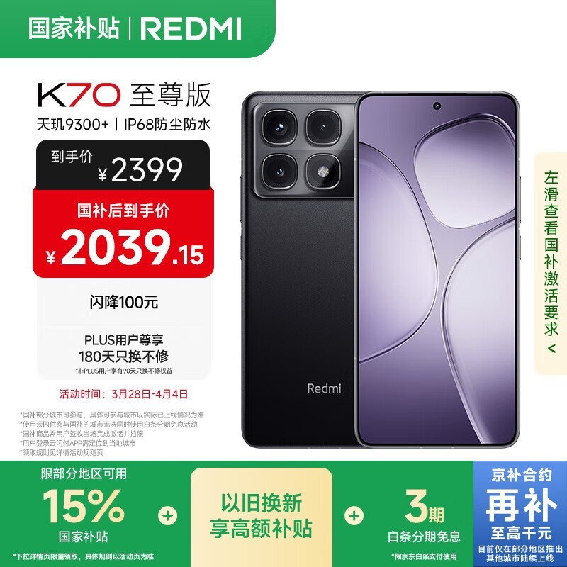 红米K70至尊版12GB+512GB京东优惠价2028元