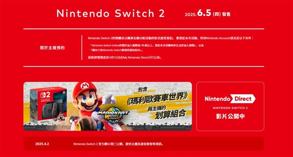 任天堂Switch 2现已确定将于6月5日在日本和北美地区发售,4月9日开启预购。