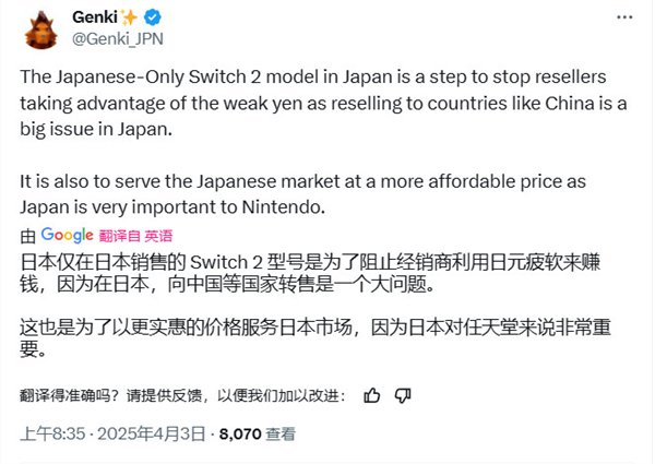 此外,为了打击黄牛,Switch 2还推出了日本国内专用的单语言(日语)版和多语言版,售价分别为49980日元和69980日元。