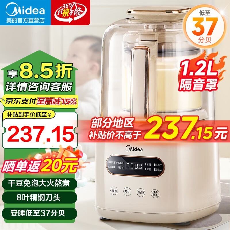 美的MJ-PB60P2-028破壁机259元包邮(原价499)