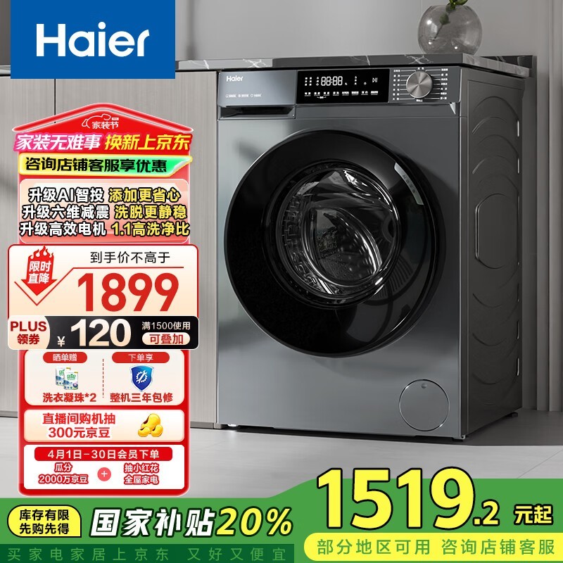 海尔初色系列10kg滚筒洗衣机超值优惠