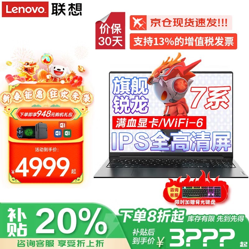 联想小新Pro16笔记本电脑R5-7430U处理器24G内存1TB硬盘