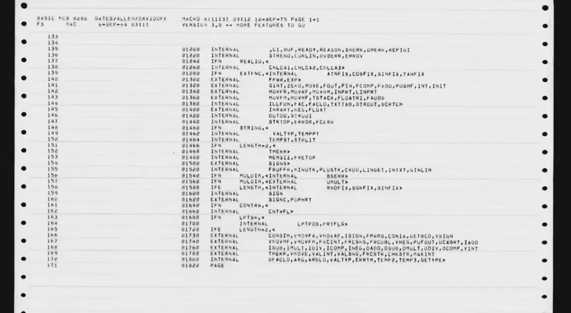 IT之家注:该代码为Altair 8800计算机开发,于1975年由盖茨与保罗・艾伦编写,采用Intel 8080处理器汇编语言,共157页。原始文件以PDF形式发布。