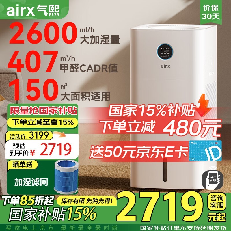 airx加湿器净化器一体机,京东优惠价2676元