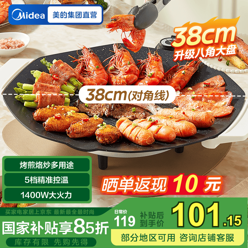 美的多功能电烤炉MC-JKE3852韩式烤肉锅电烤盘