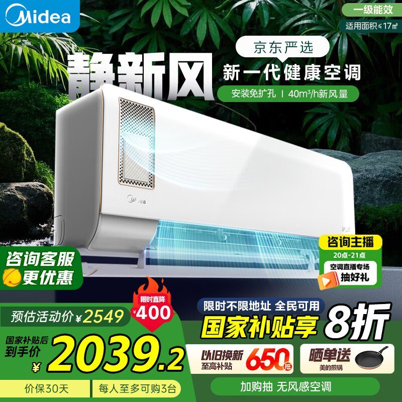 美的静新风空调KFR-26GW大1匹新一级能效仅1661元