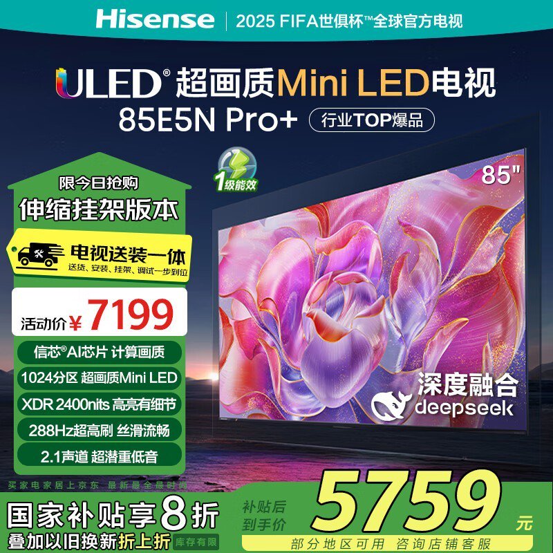海信85E5NPro+MiniLED电视4K超高清巨幕到手5586元