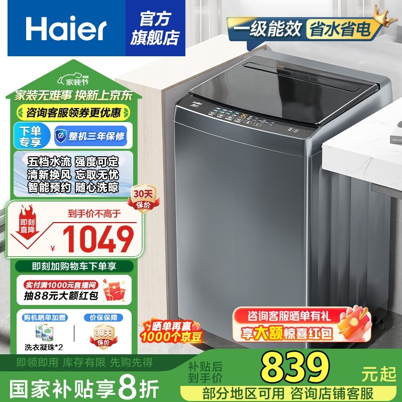 海尔10公斤波轮洗衣机,京东价737元