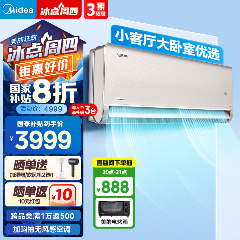 美的旋耀系列2匹壁挂式空调京东特惠3513元到手