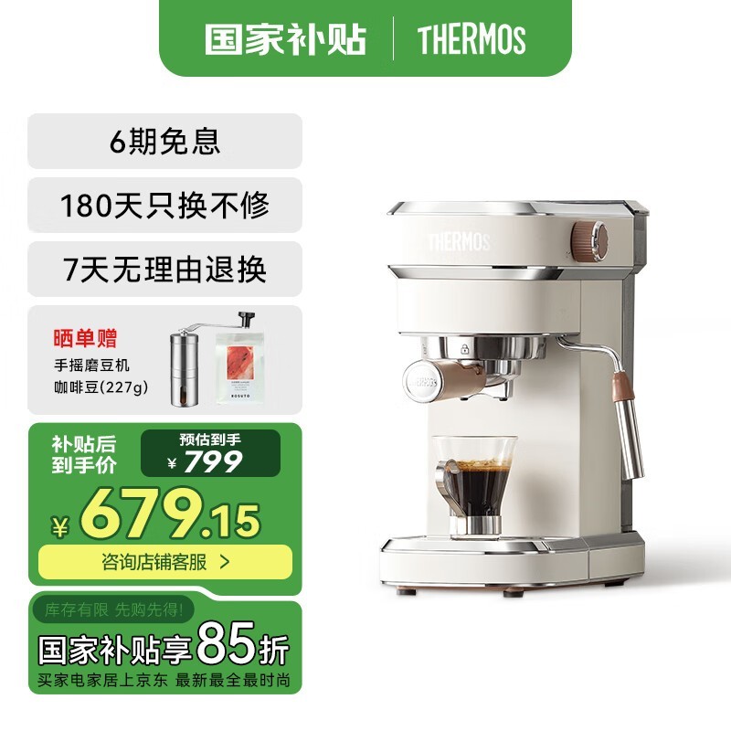 膳魔师意式半自动咖啡机白色EHA-3211A-FW促销