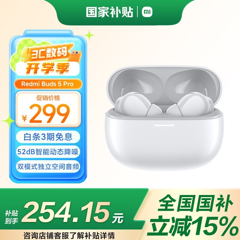 红米Buds 5 Pro晴雪白款京东促销到手254元