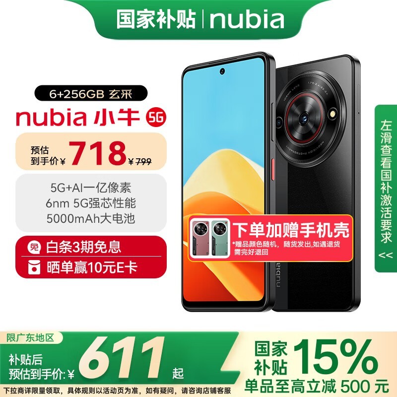 努比亚小牛5G手机(6GB+256GB)京东促销价718元