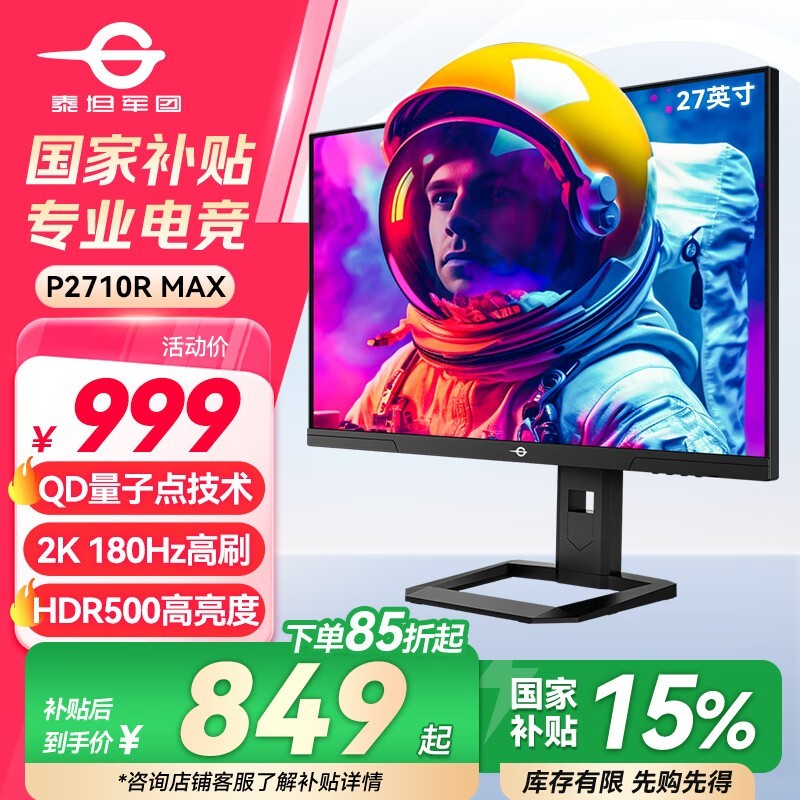 泰坦军团P2710R MAX显示器京东活动价849元