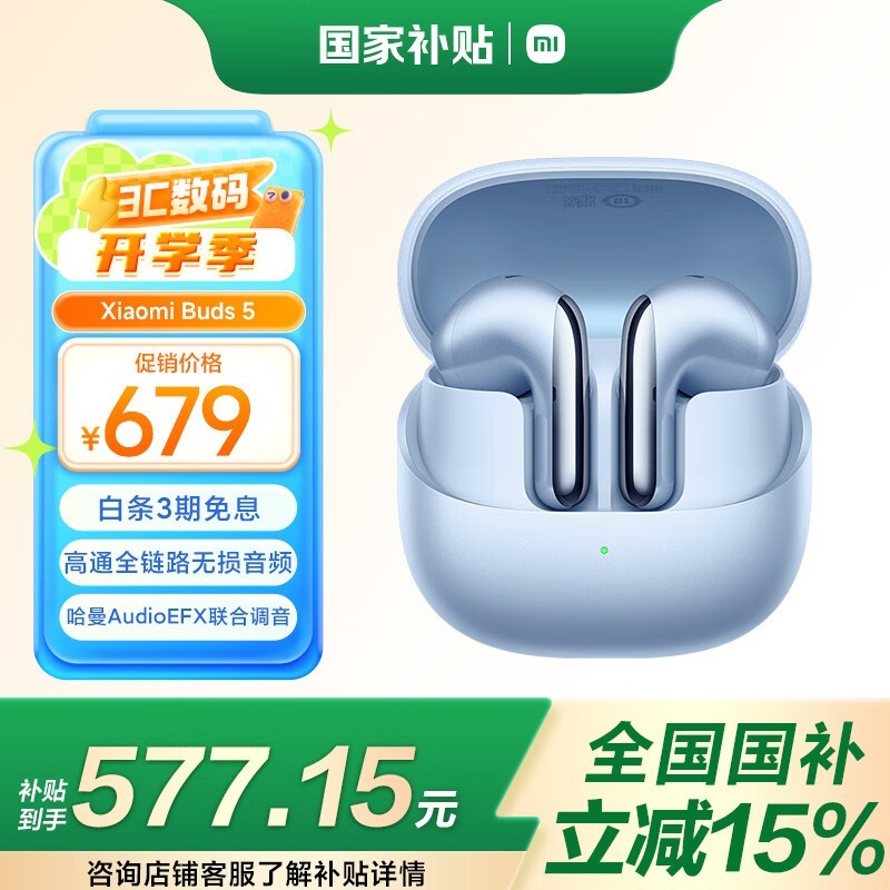 小米Buds 5蓝牙耳机京东促销,到手577元