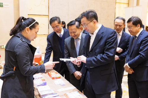 在发布会现场,与会领导为入选企业代表授牌,薇美姿作为代表企业之一,接受了这份荣誉。同时,薇美姿还与其他16家企业进行了现场产品展览展示,与会领导、参会代表参观巡展时,对薇美姿入选产品的创新升级特点给予了高度评价,并就关注的问题与企业进行了交流探讨。