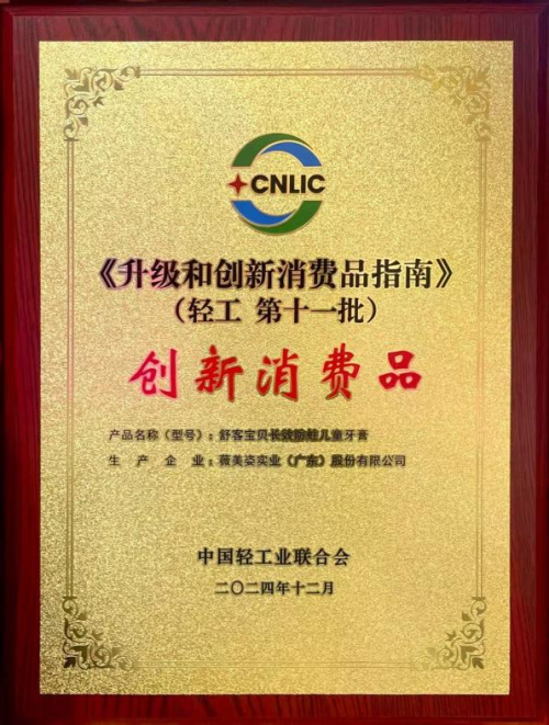 2025年3月31日,中国轻工业联合会在北京召开“创新引领新质发展 升级做强人民轻工”升级创新成果发布会,会议上发布了第十批和第十一批创新升级产品259个,海尔冰箱、格力星宇空调、方太吸油烟机等产品成功入选,而日化行业中,薇美姿旗下舒客光感炫白牙贴、舒客宝贝长效防蛀牙膏两款产品获得市场、行业认可,成功入选升级消费品、创新消费品。