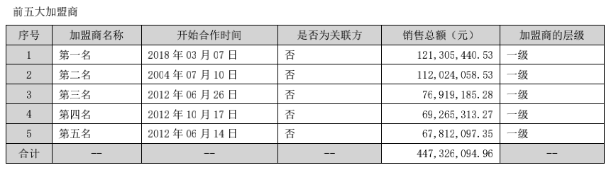 从渠道来看,线上渠道销售额66.72亿元占比45.62%,线下渠道销售79.58亿元占比54.38%。线下渠道包括直营、加盟和联营,门店数分别为980、7260和85,营收分别为15.47亿元、60.74亿元和1.16亿,占总营收比例分别为10.58%、41.54%和1.12%。