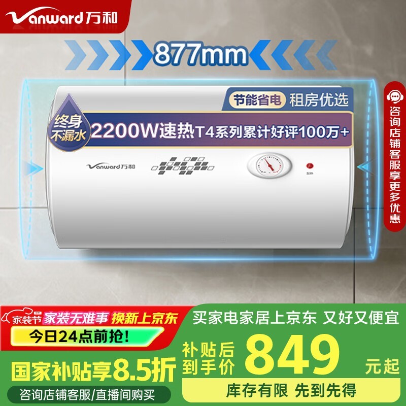 万和100L电热水器大容量2000W京东国家补贴仅844元