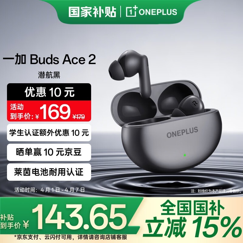 一加Buds Ace 2蓝牙耳机低至142元享好音质