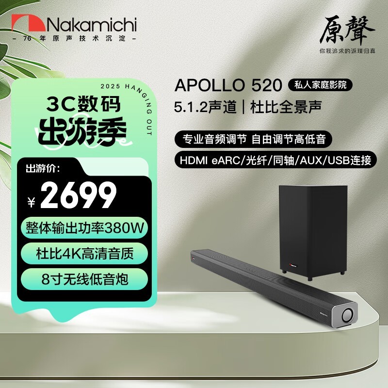 中道APOLLO520回音壁打造沉浸式私人影院体验