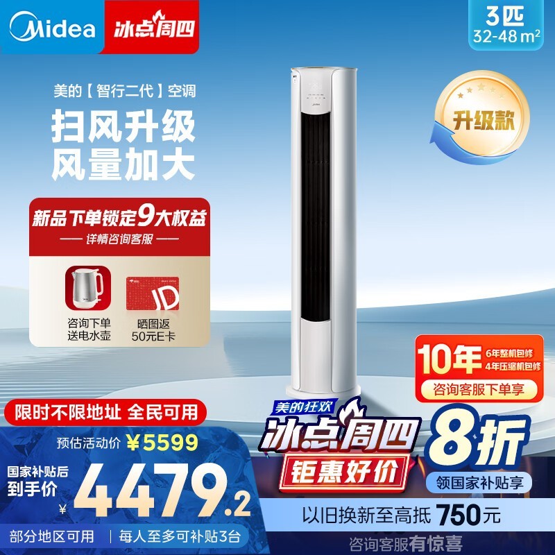 美的3匹智行空调柜机,优惠后3991元