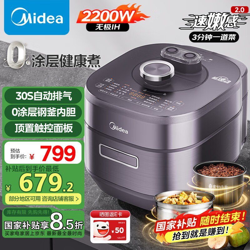 美的MY-S5972K电压力锅5L大容量IH加热技术促销