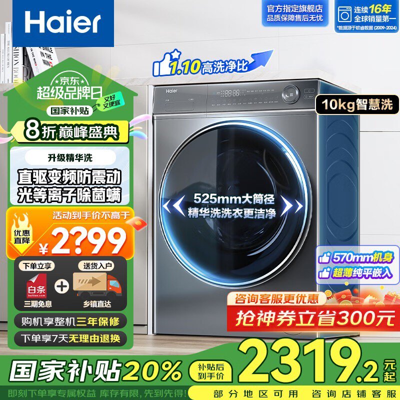 海尔10KG滚筒洗衣机,4099元现2239元