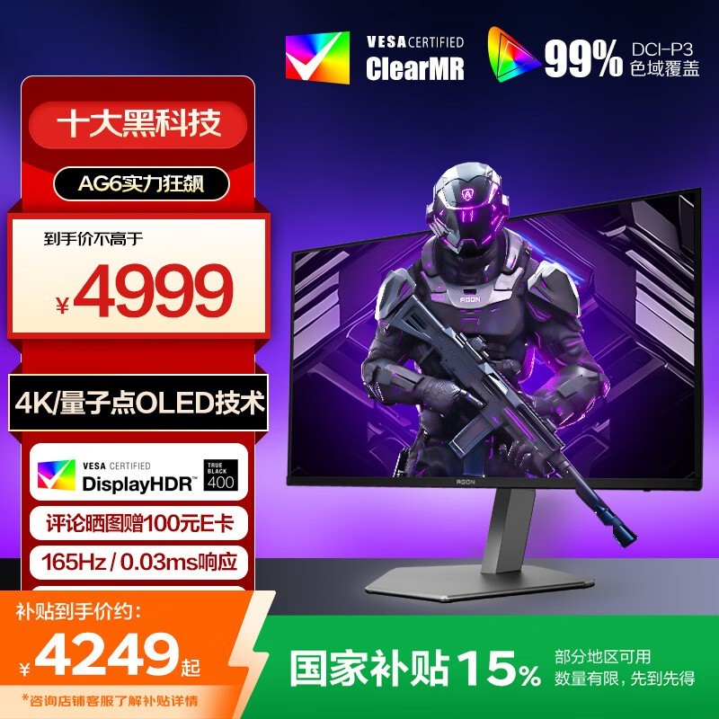 AOC爱攻AG326UD显示器4KQD-OLED仅4240元