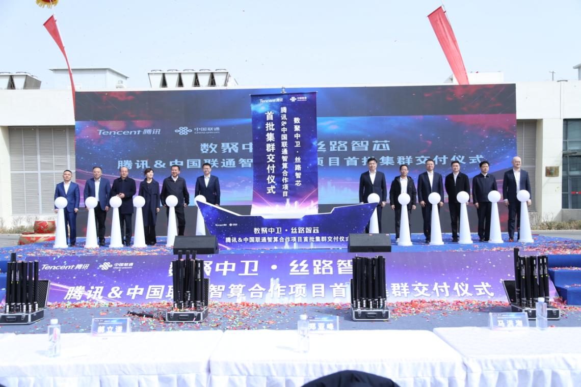 4月2日,中国联通与腾讯集团智算合作项目在宁夏中卫云数据中心交付点亮,这是目前国内单体规模最大智算项目之一,标志着双方合作首批集群正式落地启航。中国联通副总经理郝立谦,腾讯云副总裁郑亚峰、邹贤能,宁夏中卫市市长马洪海,宁夏联通总经理李晓龙等出席交付仪式。