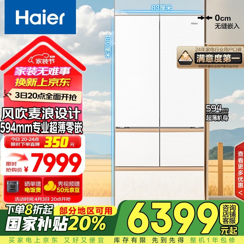 海尔512L麦浪冰箱,京东优惠后低至6114元