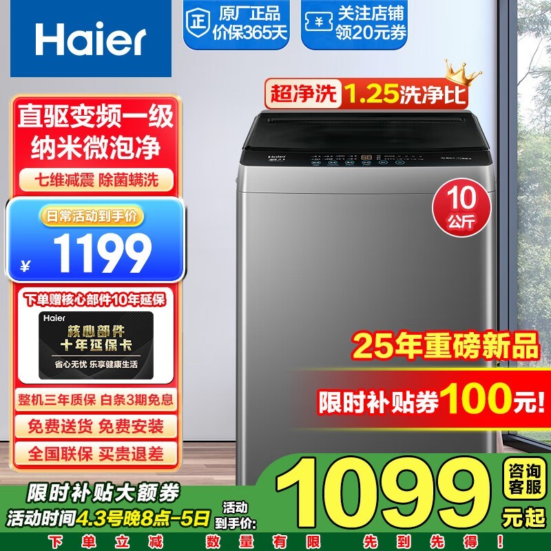 海尔10公斤洗衣机BZ20E0京东促销到手仅799元