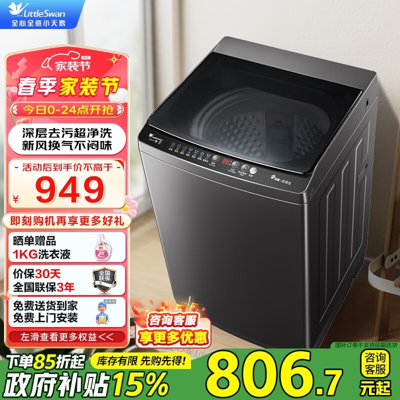 小天鹅10kg波轮洗衣机TB100V26T健康免清洗节能省电