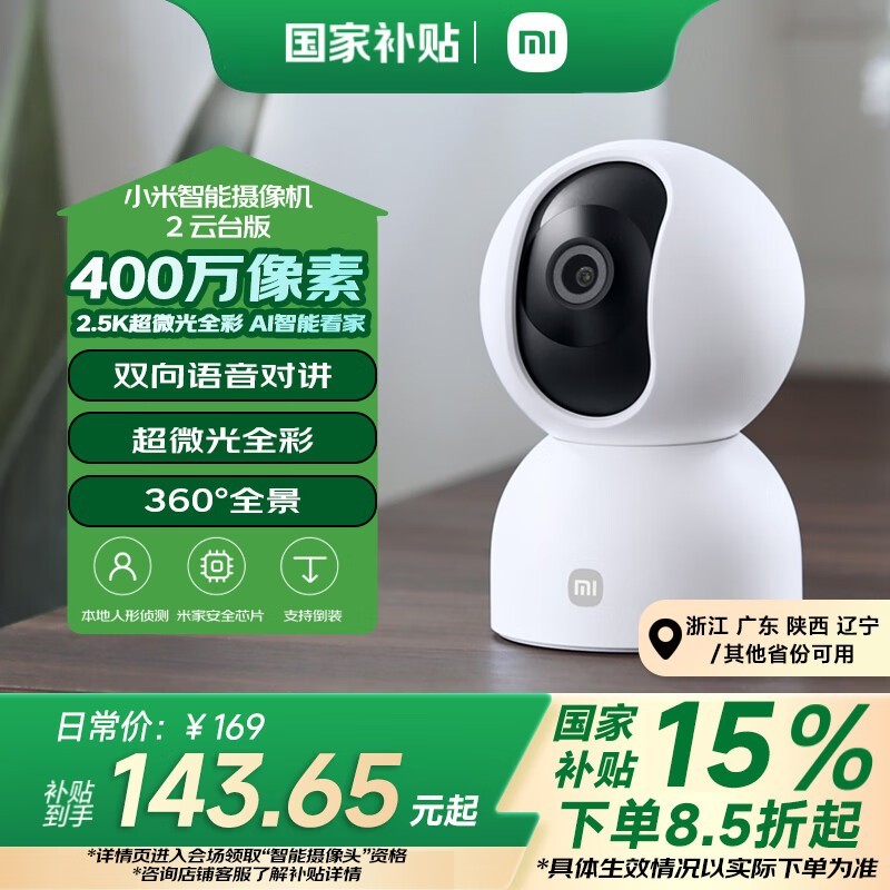 小米Xiaomi智能摄像机2云台版优惠价117元