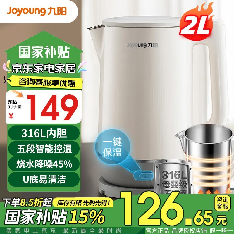 九阳电热水壶W111大容量1.7L京东58.66元包邮到手