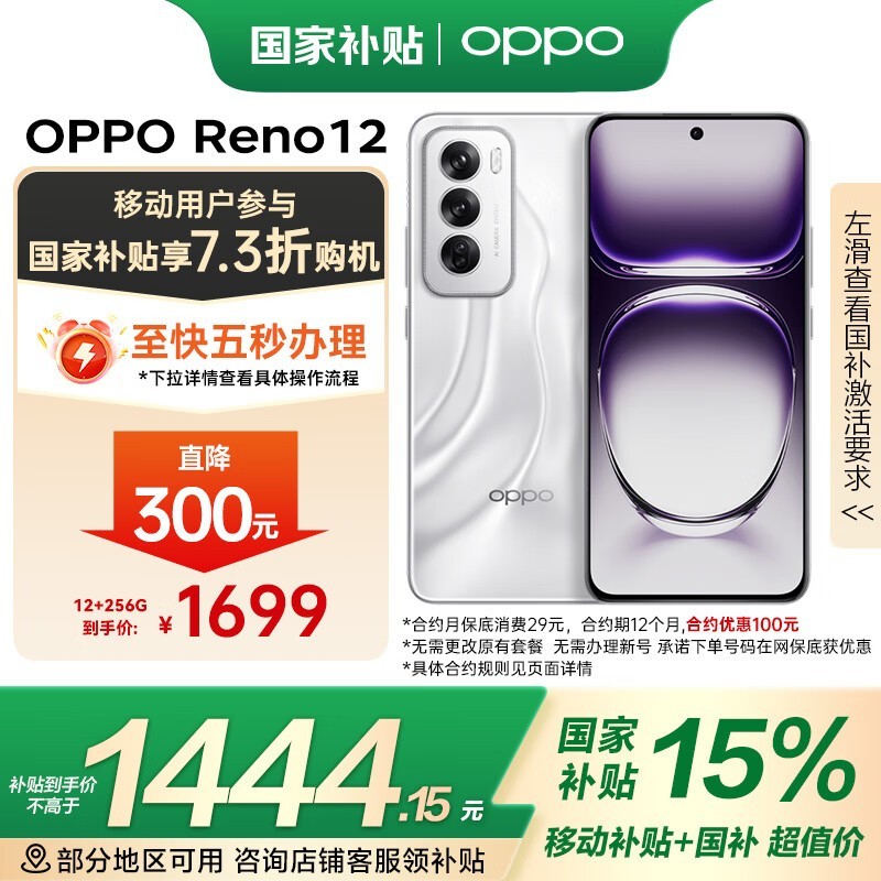 OPPO Reno12千禧银配色,性能强劲影像出色,到手仅1444元