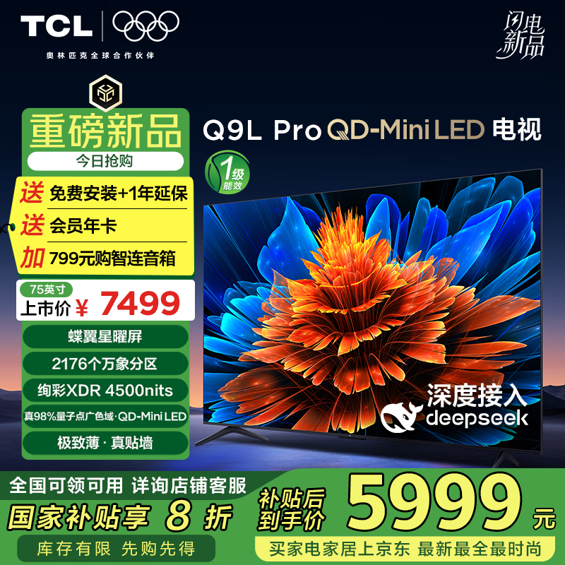 TCL Q9L 75英寸Mini LED电视促销到手价5867元